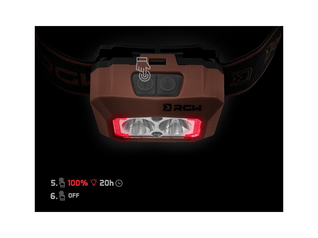 Samotná lampa je upevněna na pevném elastickém popruhu s efektním logem Delphin a názvem RGW PRO. Lampu lze podle potřeby polohovat směrem nahoru a dolů. Ať už jste rybář, myslivec nebo outdoorový nadšenec, Delphin RGW PRO UC nepochybně uspokojí vaše nároky na kvalitní čelovku s množstvím moderních funkcí.