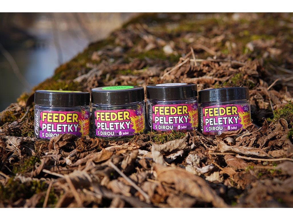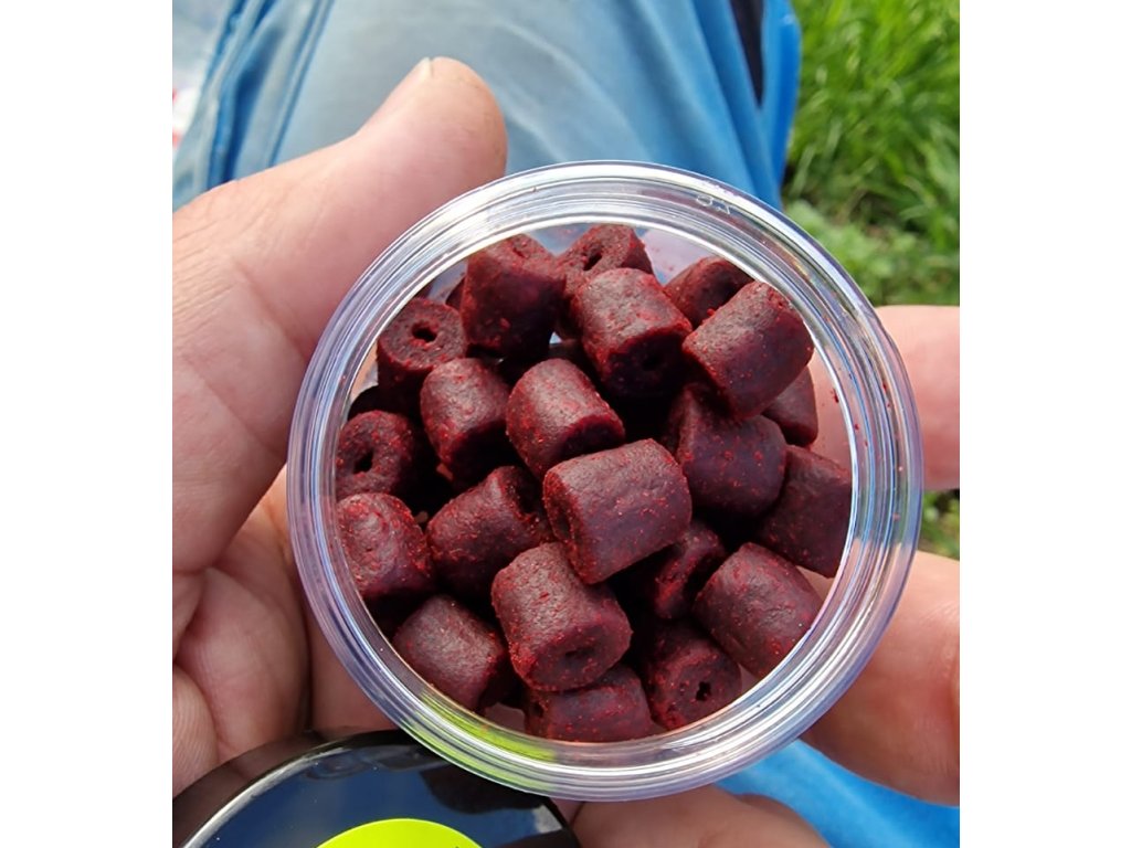 Jsou to o silně dipované pelety s dírou. Na pelety skvěle reagují kaprovité ryby, jeseteři, cejni, parmy, plotice, podoustve, karasi atd. Doba rozpadu se pohybuje kolem 1 hodiny. Perfektní nástraha na method feeder. Tento produkt je "pokračovatelem" našich tradičních chytacích pelet v balení 250 g. Nový menší průměr 8 mm využijí hlavně milovníci chytání na feeder.