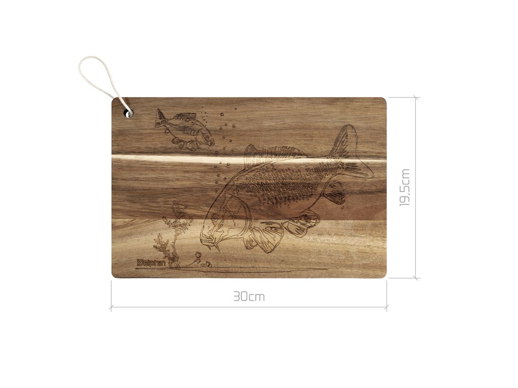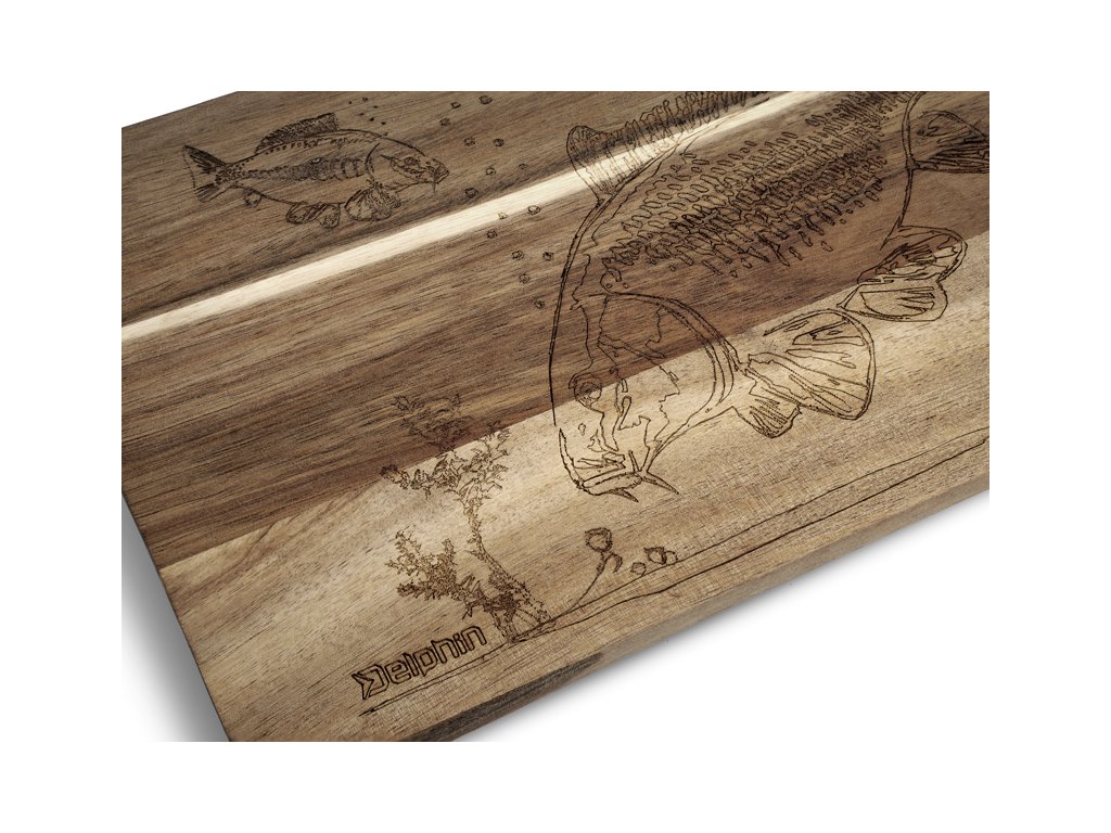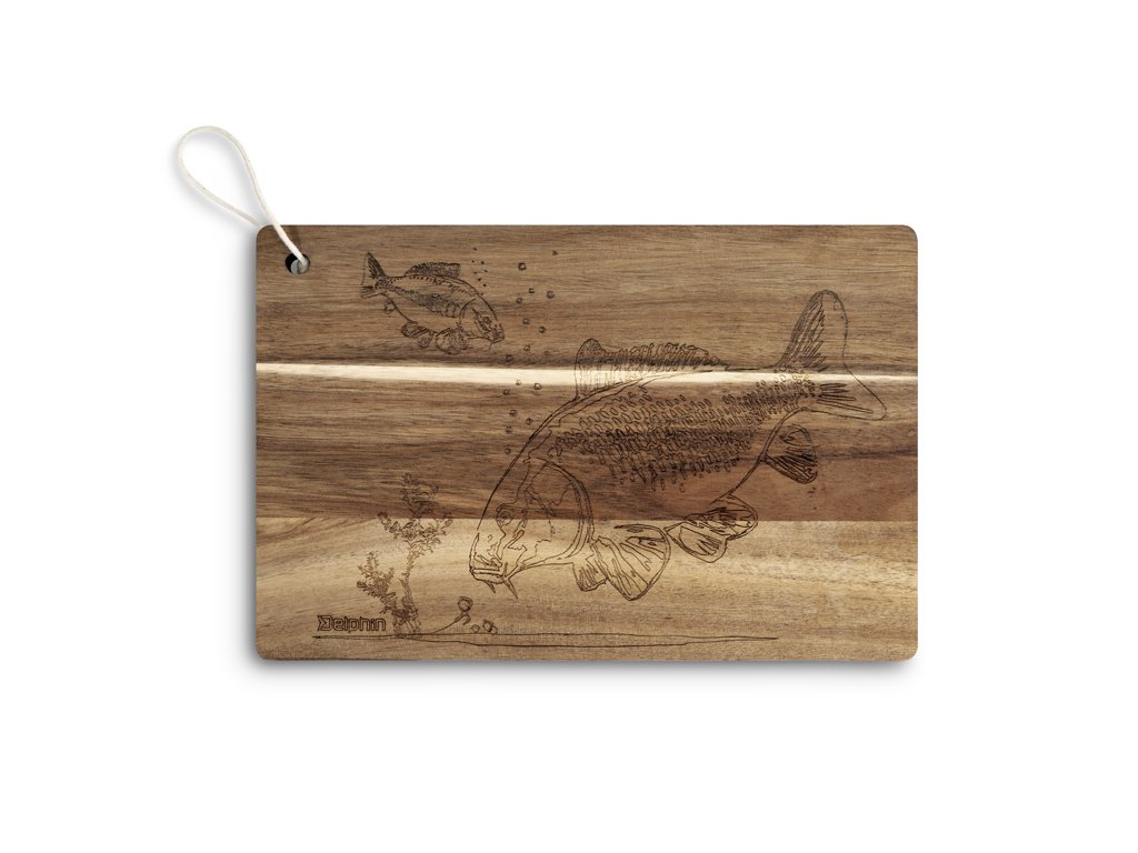 Dekorační kuchyňská deska Delphin CarpBOARD je vyrobena z akáciového dřeva, které je známé svojí vysokou odolností, tvrdostí a krásnou přírodní kresbou. Díky husté struktuře a přirozeným antibakteriálním vlastnostem si zachovává vysokou hygienickou úroveň, což z ní činí praktický doplněk do každé kuchyně, ale také na vaše rybářské výpravy.