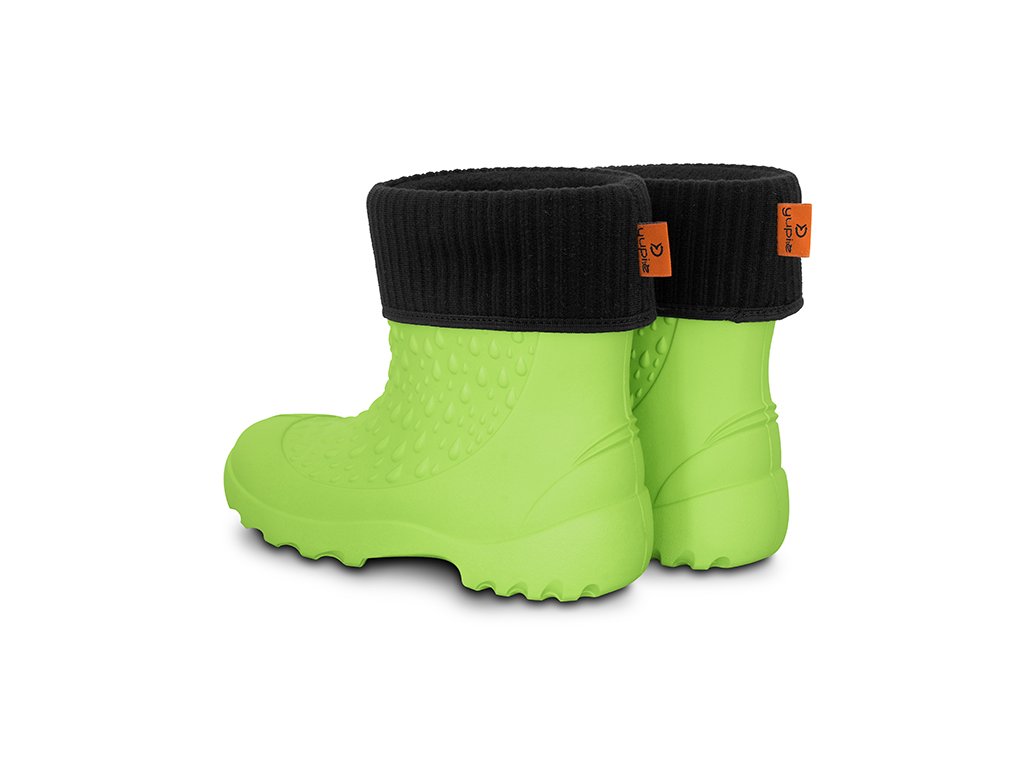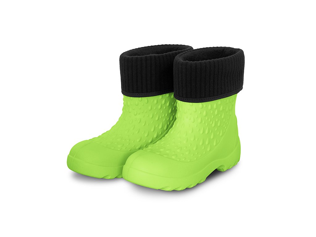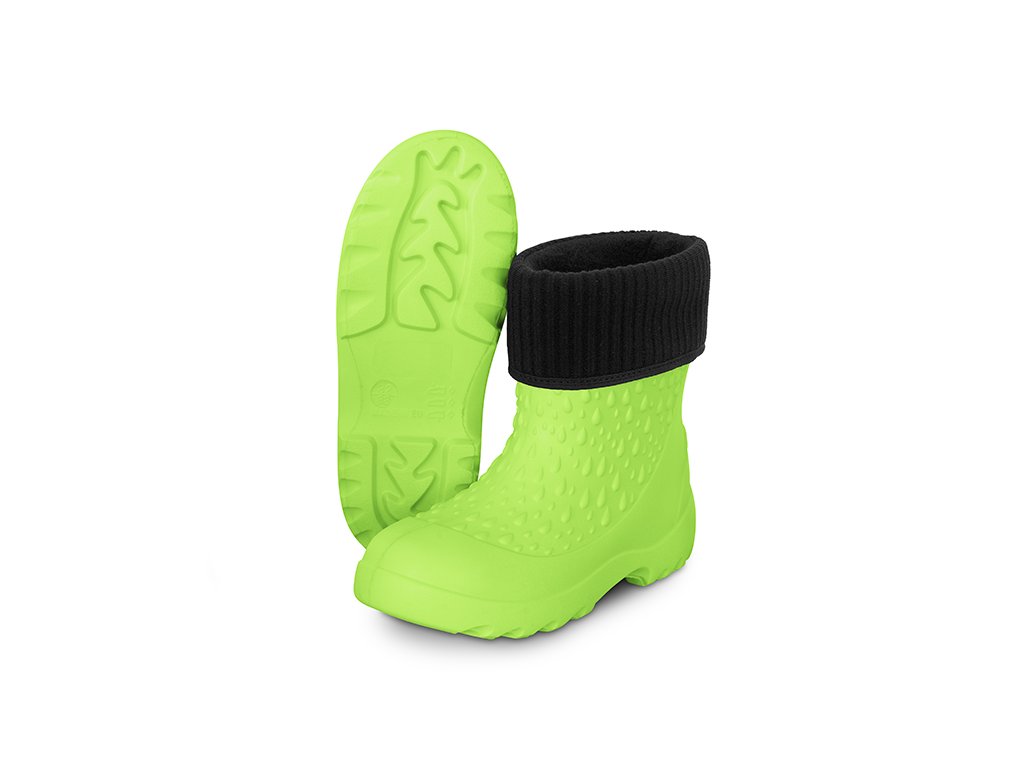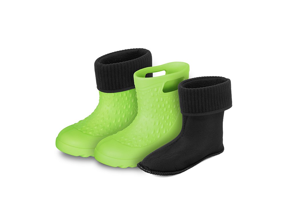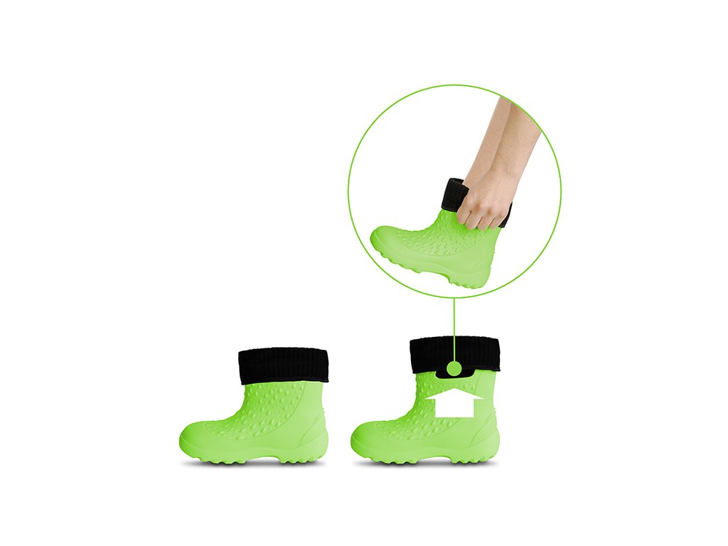 Hřejivá vložka holínek je vyjímatelná, takže jsou vhodné pro všechna čtyři roční období. Jsou vyrobeny z EVA pěny, takže jsou dostatečně poddajné a flexibilní. V horní části se nacházejí po obou stranách výřezy, pomocí kterých lze snáze natáhnout holínku na chodidlo dítěte. Podrážka má výrazný grip, který snižuje riziko uklouznutí na mokrém nebo nerovném terénu. Holínky jsou vyhotoveny v univerzální, výrazné zelené barvě, čímž jsou vhodné pro chlapce i dívky a nabízíme je v široké škále velikostí.