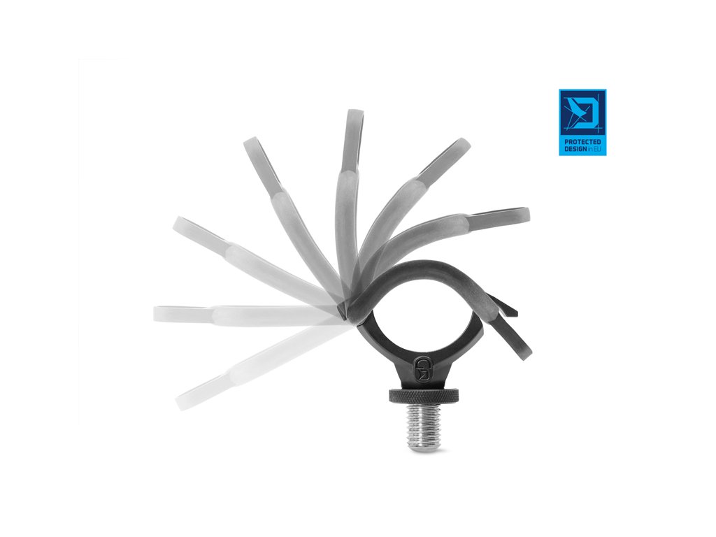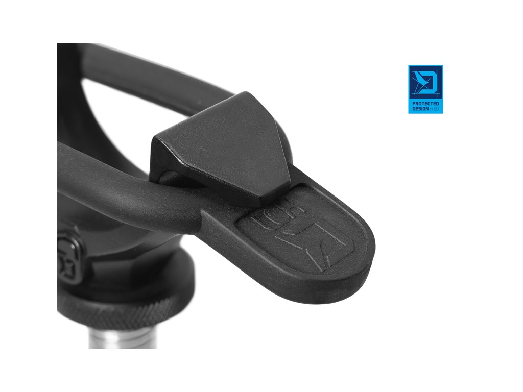 Jedinečný, patentovaný držák, který byl důmyslně navržen tak, aby udržel vaše pruty na svém místě i v případě velmi prudkých záběrů, kdy standardní držáky selhávají.