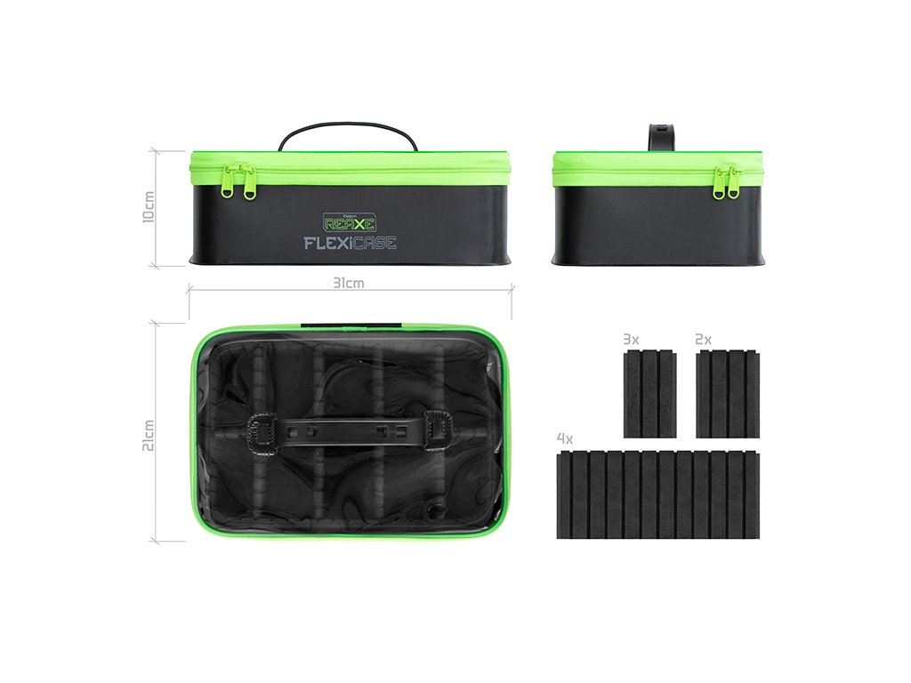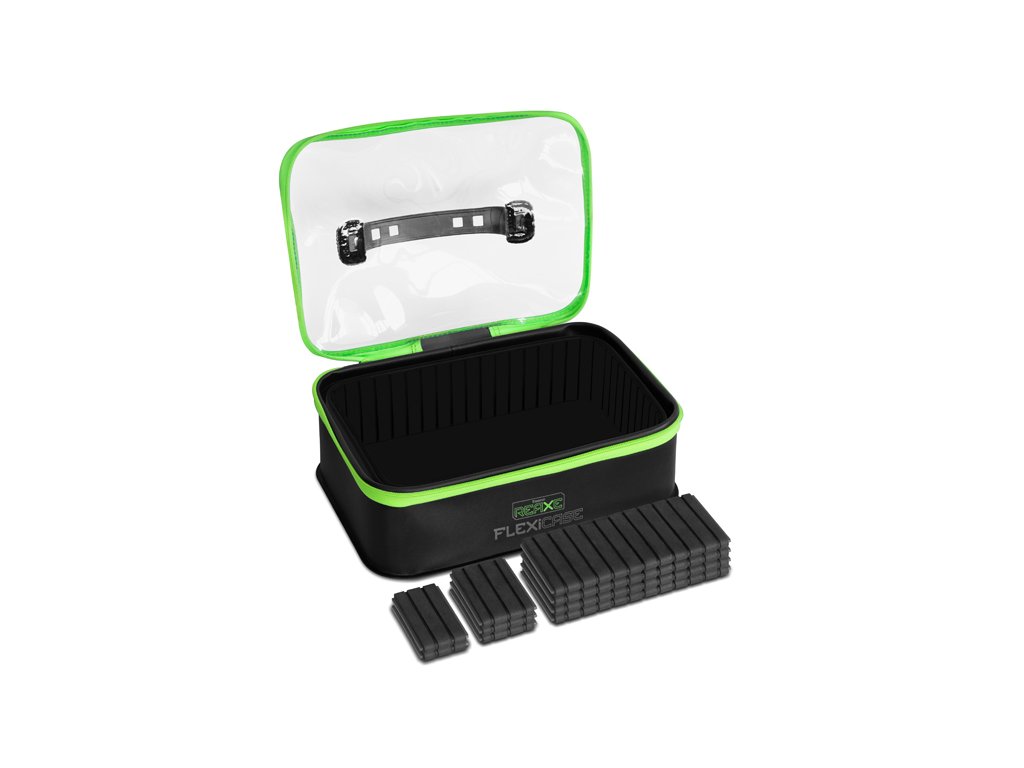 Delphin REAXE FlexiCASE je důmyslně navržen organizér z EVA materiálu, který Vám umožní uložení různého feederového vybavení, od krmítek a háčků až po samotné nástrahy.