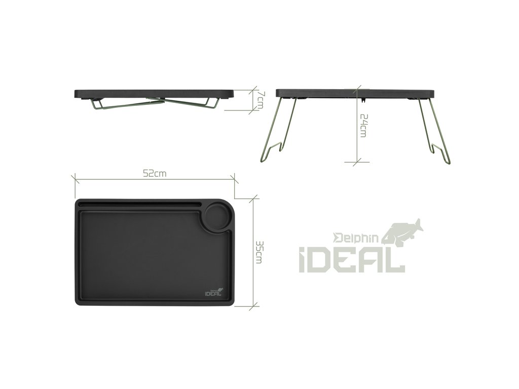 Jak už název napovídá, stolek Delphin iDEAL se stane vaším ideálním společníkem během vašich kaprařských výprav. Tento skládací stolek nabízí vše, co potřebujete – ať už k uschování výbavy v bivaku, nebo při přípravě koncových montáží. Vrchní deska je vyrobena z odolného plastu a po celém obvodu je vybavena zvýšeným okrajem, který účinně zabraňuje nechtěnému padání drobných předmětů ze stolku.