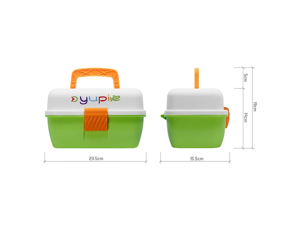 Zeleno-bílé barevné provedení doplněné barevnými prvky rozhodně zaujme a dokonale zapadne k ostatním produktům z řady YUPIE. Kufřík je vyroben z odolného plastu, který zajistí, že bude malé rybáře spolehlivě provázet během několika sezón.