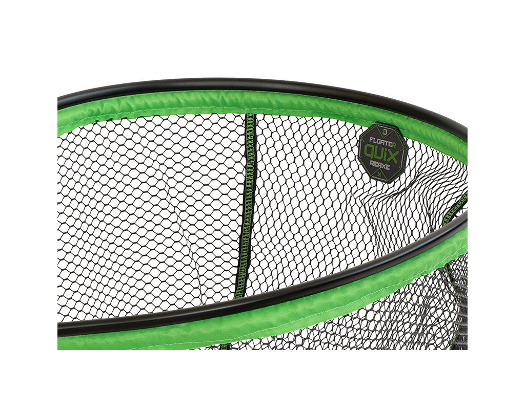 Plovoucí hlava podběráku oválného tvaru ze série REAXE disponující lehkým a pevným hliníkovým rámem černé barvy. Síťka FloateR QUIX je celá pogumovaná, tím pádem nenasává okolní vodu, snadno a rychle na vzduchu vysychá. Pod rámem je navíc prošita výraznou zelenou látkou po celém obvodu pro zvýšení pevnosti a odolnosti.