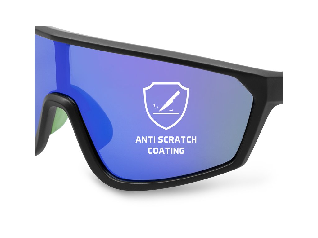 V matném černém rámu jsou uloženy čočky s Blue Revo filtrem. Filtr zlepšuje kontrast a zvýraznění barev, poskytuje také ochranu proti poškrábání a tím prodlužuje životnost a zlepšuje optické vlastnosti skla. Revo nátěr je navíc hydro a oleofobní (odpuzuje vodu a mastnotu), čímž jsou brýle snadněji udržovatelné. Další výhodou je, že oči zvenčí téměř nevidno, což působí stylově a zároveň je to praktické. Tmavá skla zároveň blokují škodlivé paprsky UVA, UVB a UVC a tím dokonale chrání váš zrak. A co je klíčové – brýle Delphin VIEW jsou polarizační. To znamená, že dokonale filtrují horizontální odrazy světla z vodní hladiny, díky čemuž dokonale uvidíte, co se odehrává pod jejím povrchem.