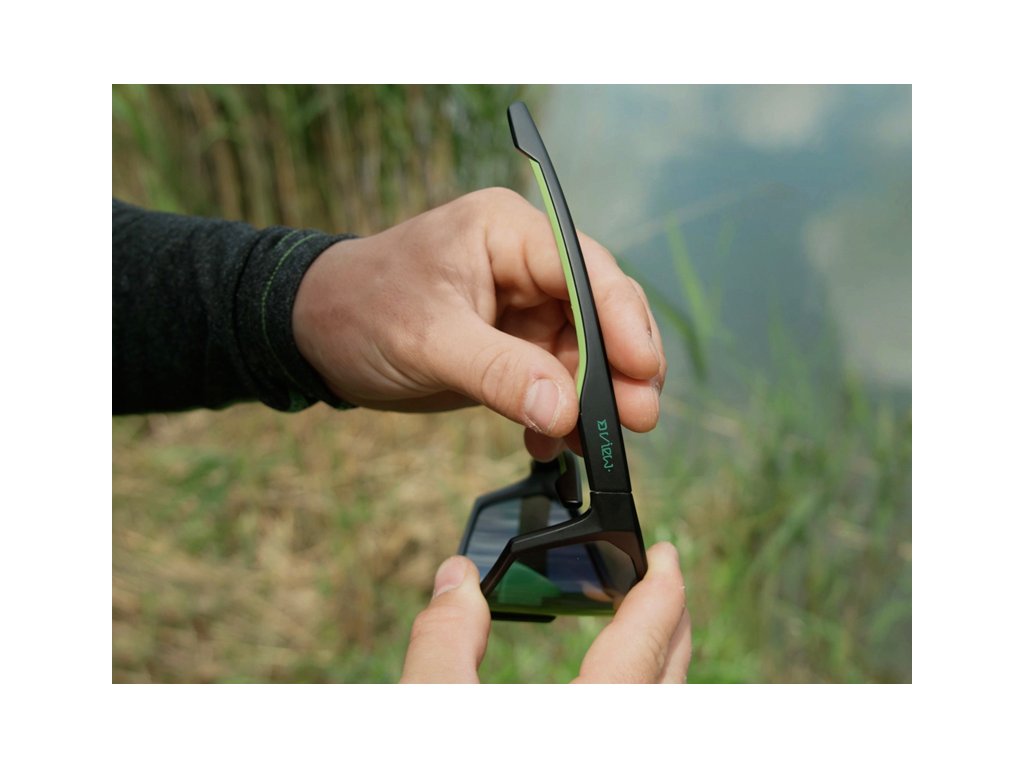 Silikonové prvky zelené barvy na ramínkách a nose zajišťují komfortní nošení a zároveň udržují brýle pevně na místě, ať už během aktivního rybolovu nebo během sportovních aktivit.