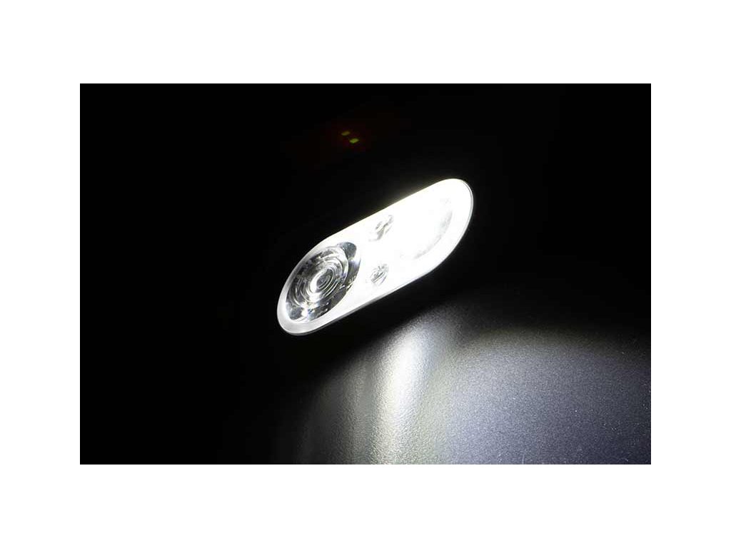- Funkce tlačítka Power – první stisknutí bílá 500lm, druhé stisknutí 120lm. Třetí stisknutí vypne