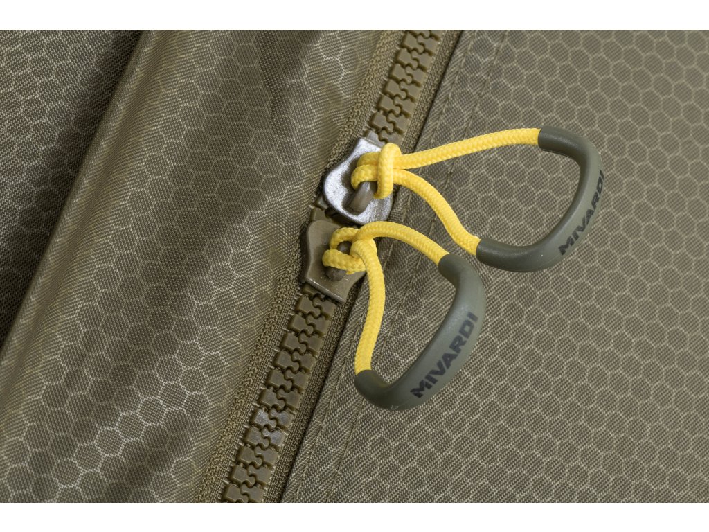 Mivardi Base Camp XXL je velký, robustní a dokonale stabilní přístřešek, vyladěný do posledního detailu, který je zároveň snadno a rychle postavitelný. Nabízí však mnohem více než jen velký prostor, dveře a okna. Jeho základem je mimořádně stabilní rám se zdvojenými stojnami, propojenými rozpěrnými tyčkami s pevnými klipy na obou koncích. Ty výrazně zpevňují konstrukci a průhyb stojen. Dvě z těchto rozpěrných tyček jsou osazeny praktickými držáky prutů na suchý zip. Všechny hlavní části rámu jsou teleskopické a jsou vybaveny spolehlivým systémem pro snadnou fixaci výsuvu. Teleskopické části rámu rovněž umožňují dosažení kompaktní přepravní velikosti a zajišťují i rychlé a pohodlné rozložení / složení přístřešku. V extrémních podmínkách je možné ještě zvýšit stabilitu přístřešku použitím čtyř kotvících lanek. Sestavení i složení přístřešku snadno zvládne jedna osoba. Plášť z materiálu M-TEC300 s hexagonální texturou disponuje vodním sloupcem 8000mm a zvýšenou mechanickou odolností. Na zadní stěně se nachází velké okno s moskytiérou, nylonovým pláštěm a lze na něj připnout pomocí suchých zipů transparentní PVC plášť. Je též vybavené funkcí mikroventilace při použití rozpěry ve spodní části okna. Přední stěna je tvořena otevíratelným vchodovým panelem s obrovským oknem, osazeným moskytiérou a nylonovým pláštěm. Přední panel typu letter box lze otevřít po stranách a klasicky srolovat nahoru nebo jej částečně rozepnout a otevírat postupně shora dolů. V přední části přístřešku se nachází velká markýza s vlastní sklolaminátovou konstrukcí. Při rozložení je podepřena dvěma stojnami a zajištěna kotvícími lanky. Markýzu je možné kompletně sklopit podél přední stěny přístřešku a není ji třeba vždy rozebírat. Speciálně řešené napojení markýzy na přístřešek účinně brání hromadění vody na střeše i při prudkém dešti. Boční stěny přístřešku jsou vybaveny velkými otevíratelnými okny s nylonovým pláštěm a moskytiérou s funkcí mikroventlilace. Boční panely typu letter box je rovněž možné částečně otevřít či úplně odepnout. Unikátním prvkem přístřešku Mivardi Base Camp je samostatně dostupná sada pro napojení bivaků. Jedná se o dvě univerzální boční manžety, které lze připevnit k přístřešku Base Camp místo odepnutých bočnic. Tyto manžety pak slouží ke snadnému napojení téměř libovolného bivaku či brolly na přístřešek Base Camp. Mezi další samostatně dostupné příslušenství patří sada čtyř vnitřních závěsných organizérů nebo masivní odolná podlaha. Přístřešek je standardně dodáván v dostatečně velké transportní tašce pro snadné uložení sbaleného přístřešku. Tato taška z nylonu 600D je nepromokavá a omyvatelná.