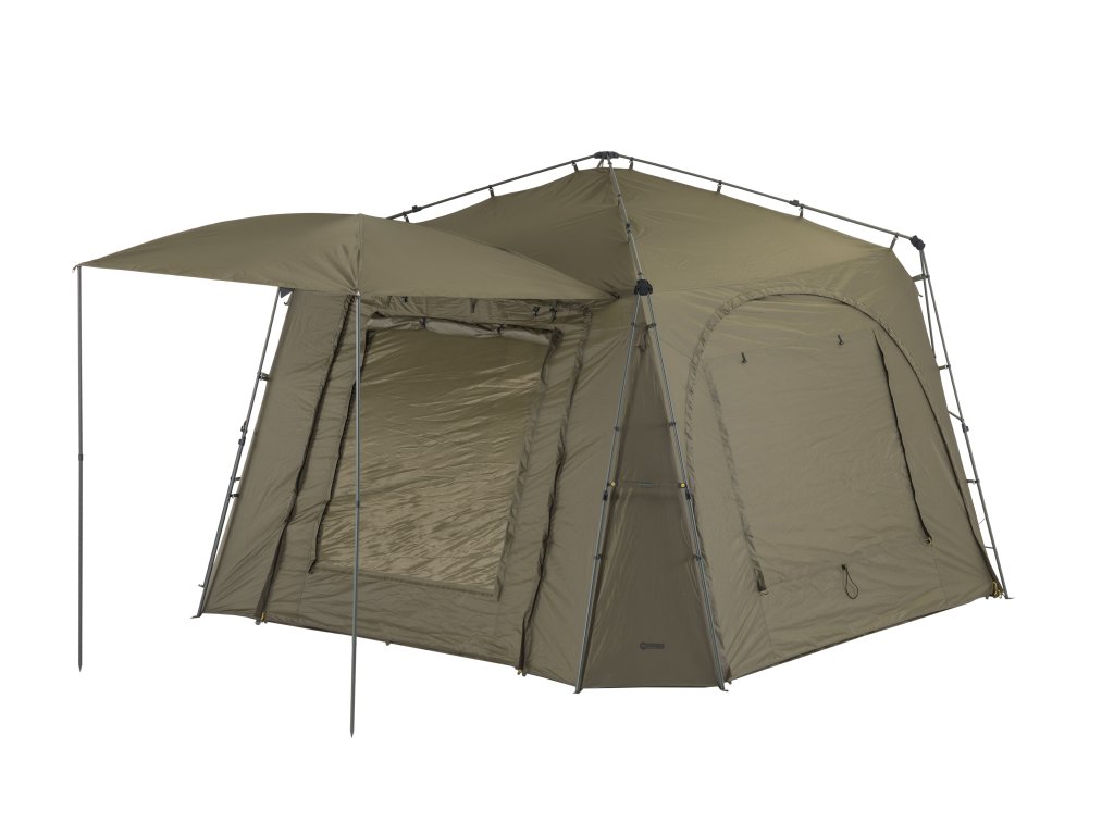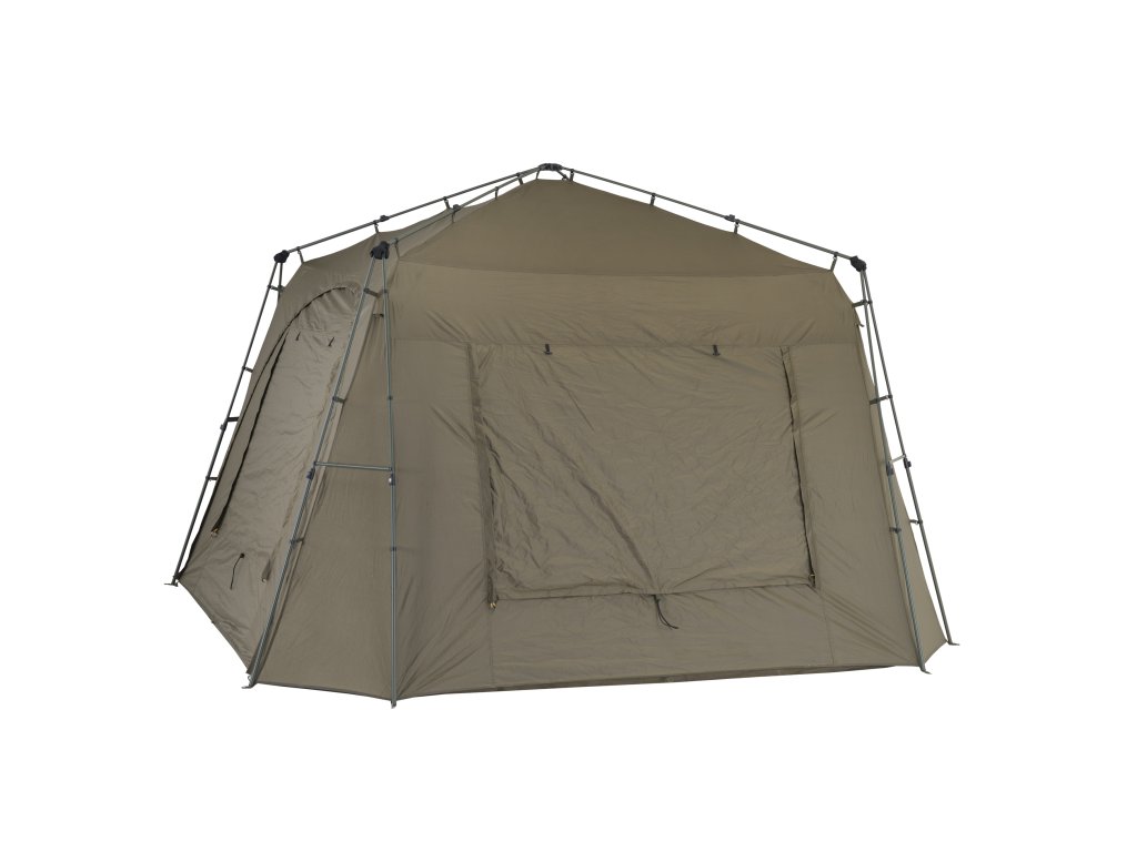 - K přístřešku Base Camp lze pomocí Bivvy Connection Kitu připojit jakýkoliv bivak nebo brolly na trhu