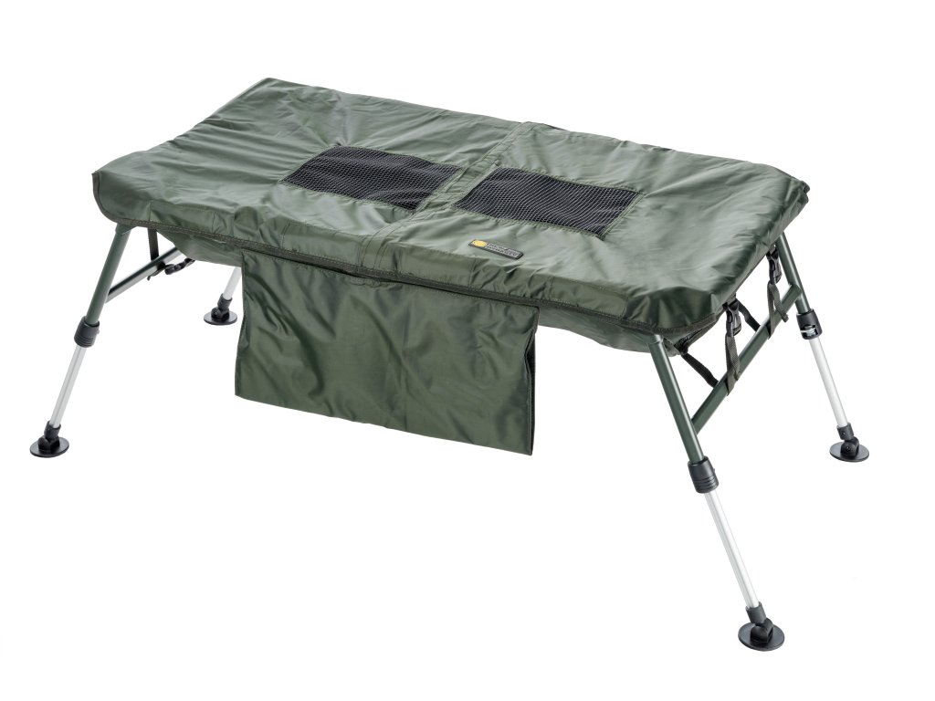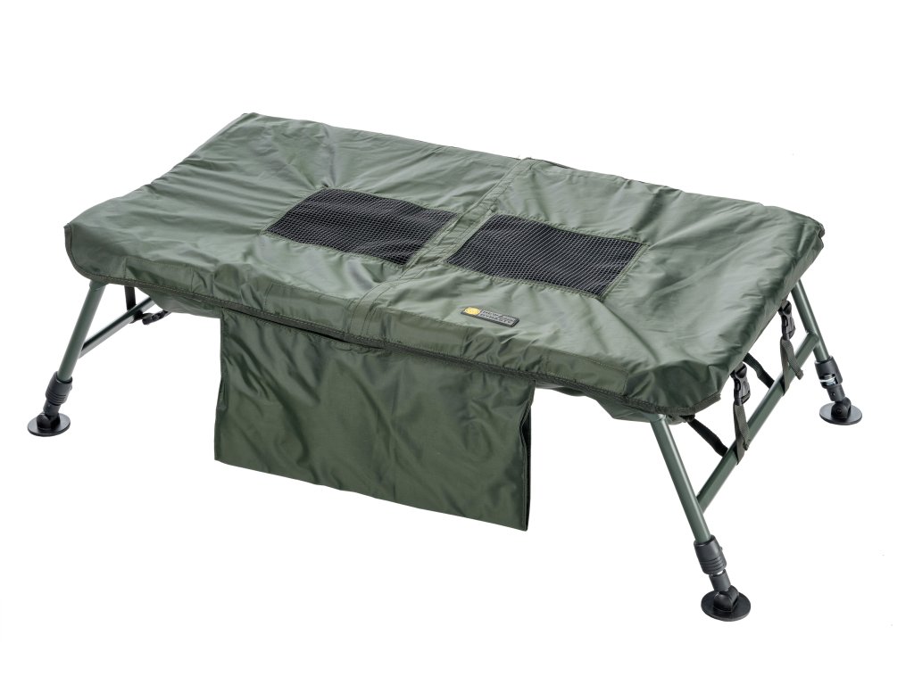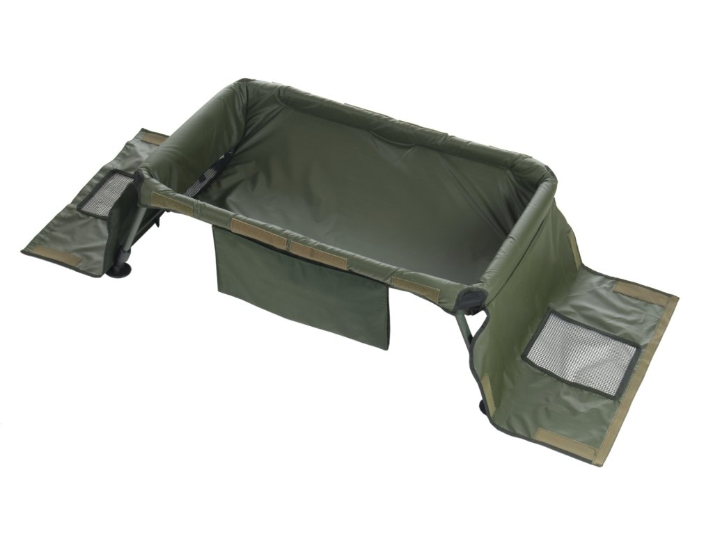 Nekompromisní řešení v péči o váš úlovek. Prostorná vanička s trubkovým rámem a čtyřmi teleskopickými nohami pro bezpečné položení úlovku i ve členitém terénu a jeho odháčkování a ošetření. Důmyslně řešené víko umožňuje rychlé uzavření vaničky a napomáhá zklidnění ryby zakrytím její hlavy. Zároveň umožňuje polévání ryby vodou přes pogumovanou mřížku. Voda odtéká otvory na obou čelech. Vanička je doplněna polstrovanou podložkou na klečení při focení a další manipulaci s rybou. Velkou výhodou je minimální transportní velikost složené vaničky.