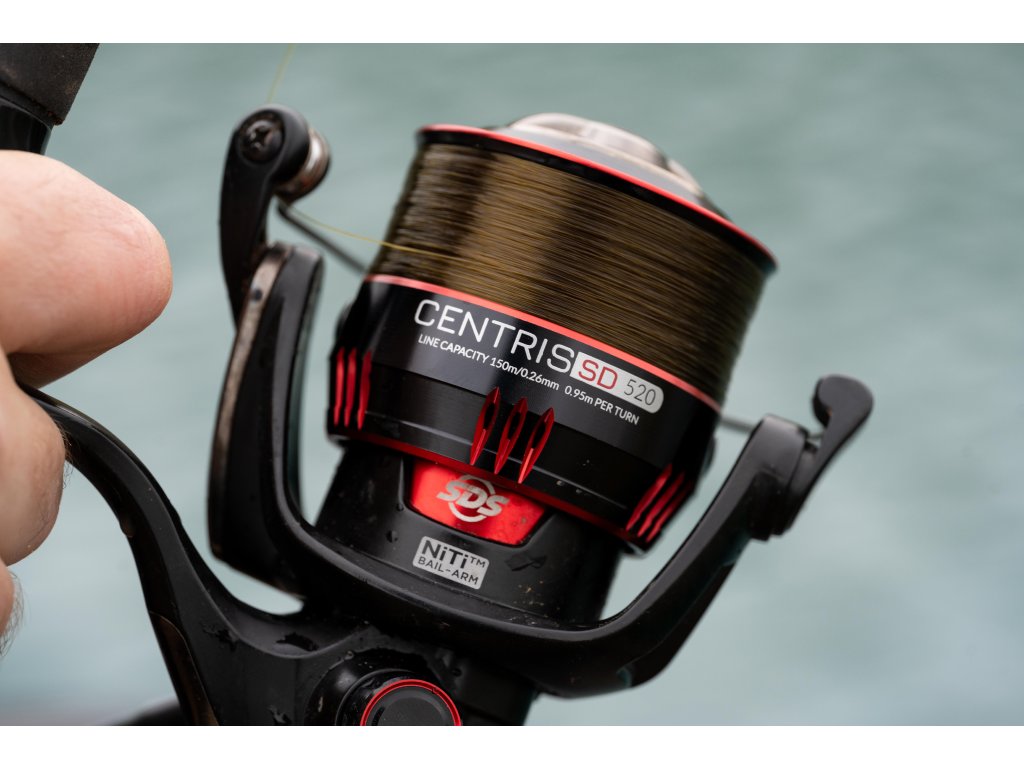 Centris SD má kompaktní tělo s převodem Power Drive. Tato super pomalá oscilační šneková hřídel nabízí vynikající navíjecí výkon vzhledem k velikosti navijáku. Technologie stojící za překlapěčem navijáku z NiTi drátku zajišťuje, že se vždy vrátí do správného tvaru, což eliminuje ohnutí překlapěče navijáku při skladování a přepravě. Díky vícenásobným podložkám je mikroregulovatelná přední brzda neuvěřitelně hladká. Tlačítkové uvolnění cívky umožňuje její okamžitou výměnu.