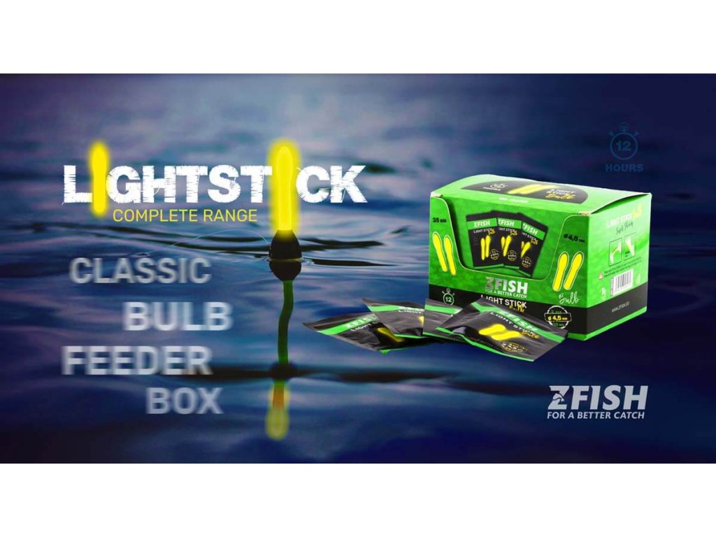 ZFISH Chemical Light Stick with Tip Holder S/SS jsou klasická chemická světýlka velmi užitečná za snížené viditelnosti, či pro večerní a noční rybolov. Tyto speciální tyčinky se pomocí integrovaného držáku snadno připevní přímo na špičku prutu kde spolehlivě drží, dokud je nesundáte. Aktivace se jednoduše provádí zlomením střední “světelné” části tyčinky a pro lepší rozlití svítící tekutiny, doporučujeme tyčinku důkladně protřepat. Vylepšená technologie chemické směsi zajistí dobu svícení až 12 hodin.